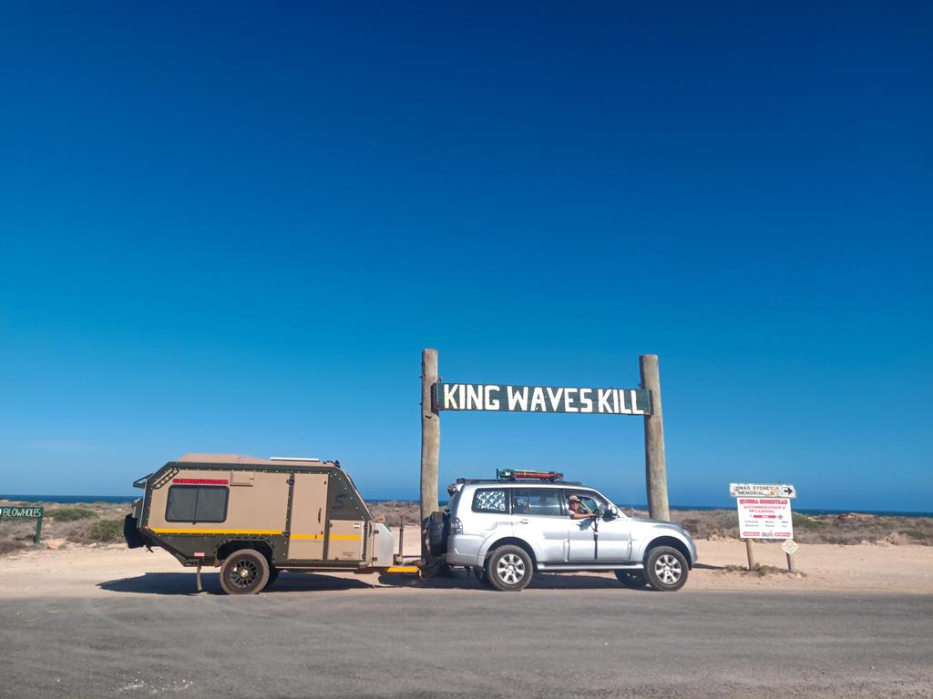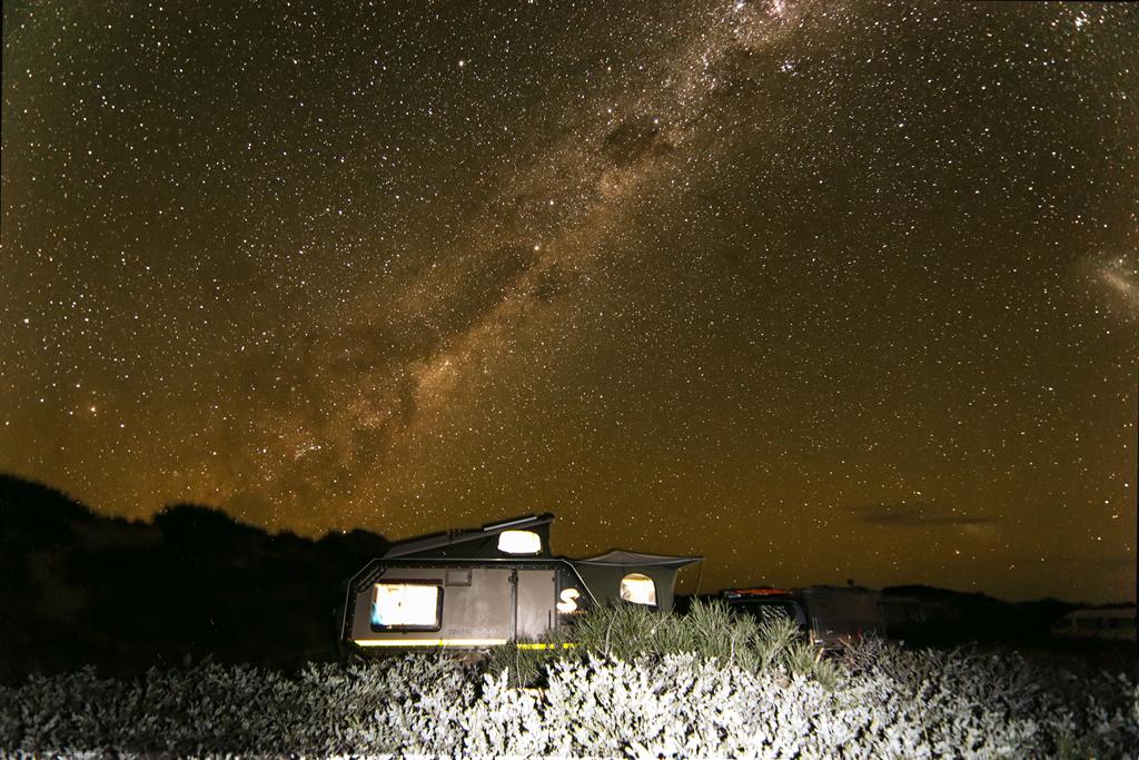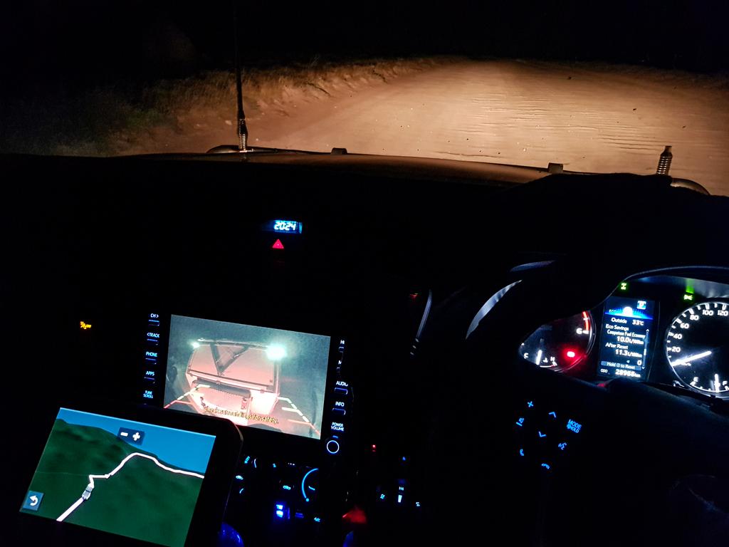 Then we missed the turning. When coming to a fork we saw a confusing sign pointing left to Janes Bay and right to ‘camps’. What that meant is ‘other camps further up north’. By the time we realized that we missed the turning. Turning around with a caravan in tow in the dark wasn’t easy at all. It took us quite some time. The squeaky sound of the caravan breaks was horrifying when we reversed all the way into the bush. Luckily the track was wide, and we managed to get back on track.