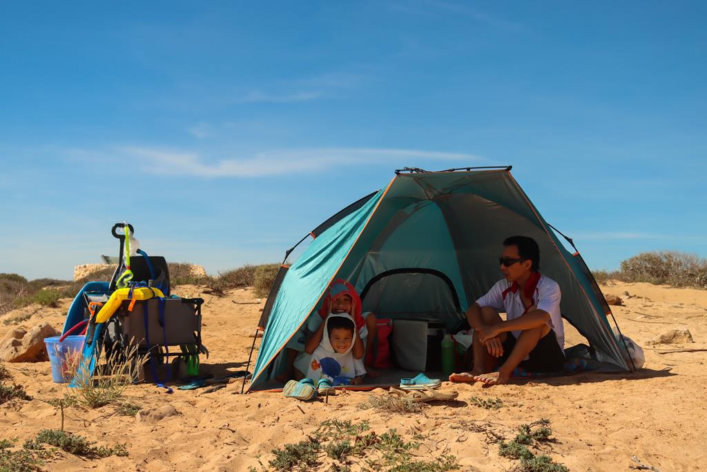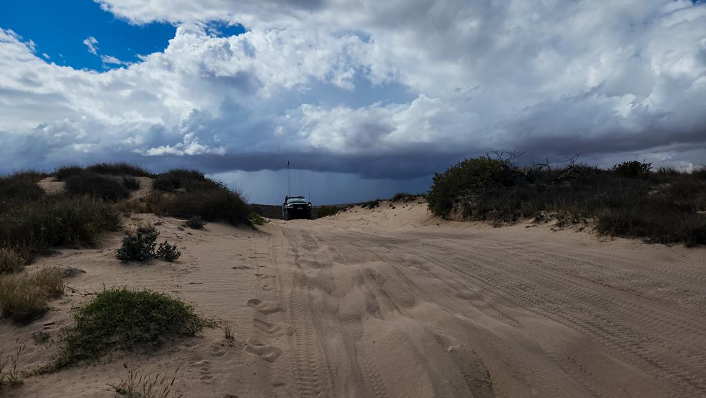 There is a mobile booster tower, at the turn off to the campground from Cardabia Ningaloo Road. It might work for certain types of phone at the turnoff to the campground but it didn’t work for us. After the turn off to the campground, the track is quite soft. There is also a small sandy hill to climb.
