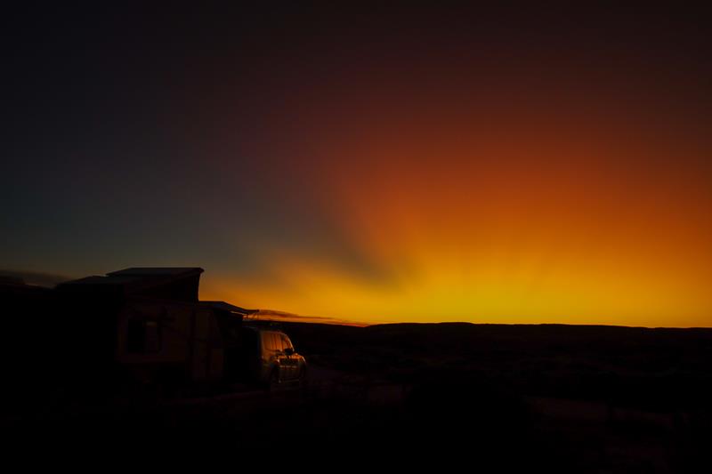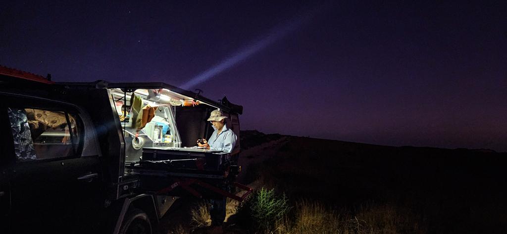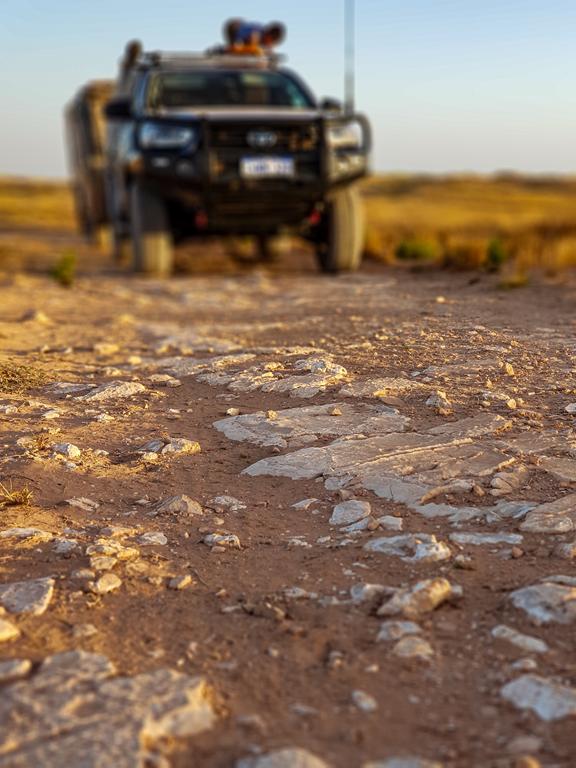 It was a slow drive from Coral Bay along Cardabia Ningaloo Road for us in April 2025. The approximately 100km drive took us nearly 4 hours (we were towing and also stopping). We travelled between 15 and 35km on a heavily corrugated track, which was a mixture of sand and rocks. We knew that travelling that slow would mean that we arrived at our destination late. It turned out we arrived even later than we thought. We had to travel in the dark too. So we decided to stop along the way to have our dinner before continuing the journey.