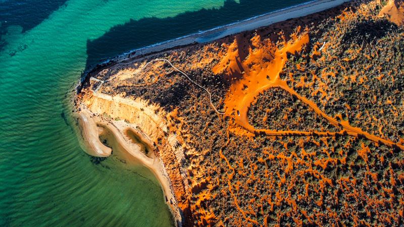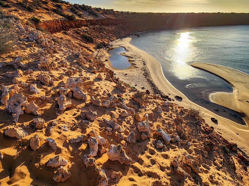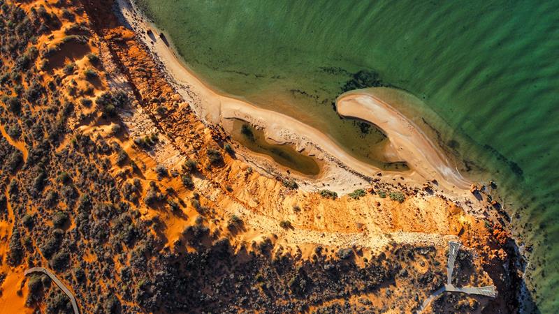 Interestingly, the red sand of Peron Peninsula is mostly made of quartz with a layer of iron oxide. It is the same compound that forms when irons rusts, giving the sand its unique colour. The deposits of these red sand are thought to be at least 250,000 years old. While this red sandstone underlies most of Shark Bay, it is exposed only on Peron Peninsula.