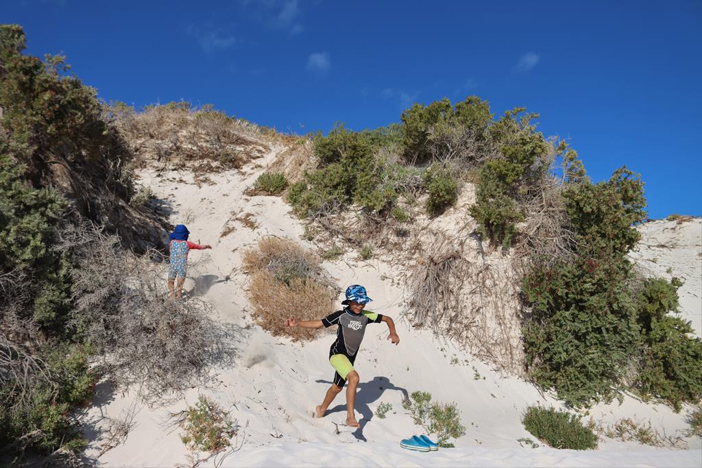 Children found great pleasure playing in the sand dunes, running down the slopes and falling into the soft white sand!